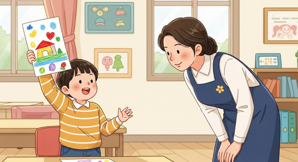 성공 사례: 한 교사는 작품을 보여주는 아이에게 “네가 표현한 색이 정말 독창적이구나”라고 말했습니다.