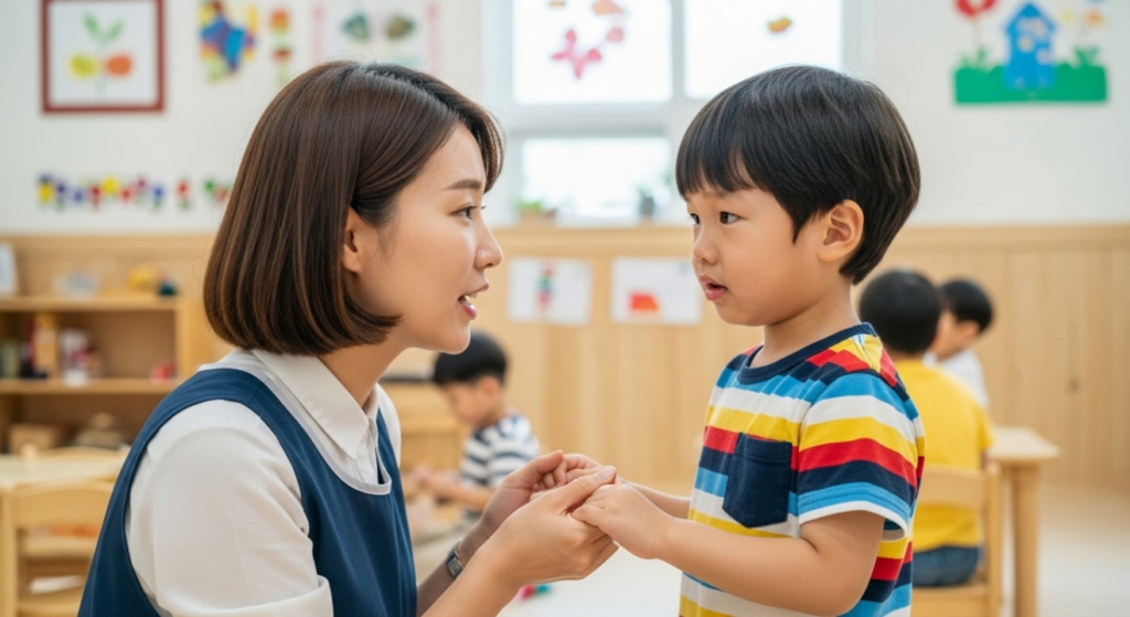 실패 사례: 한 교사는 아이의 울음을 “참아야 한다”라고 지시만 했습니다.