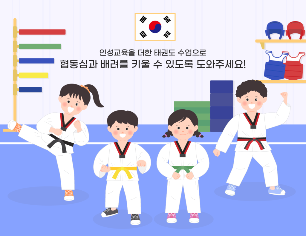 태권도는 단순한 운동이 아닙니다. 정신 수양과 예절을 중시하는 무예로서, 인성교육과 자연스럽게 어우러질 수 있는 훌륭한 토대를 가지고 있습니다.