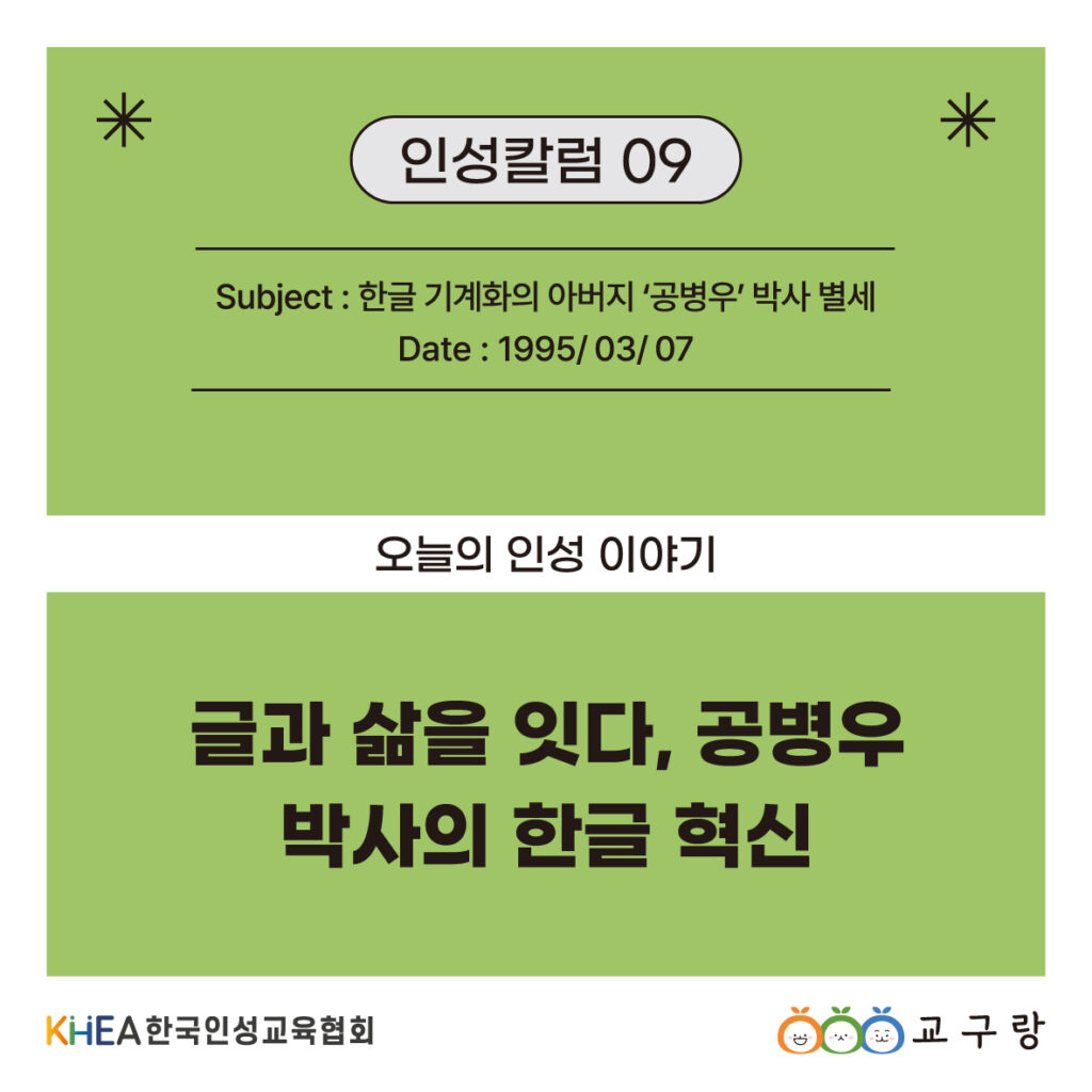 Subject : 한글 기계화의 아버지 ‘공병우’ 박사 별세