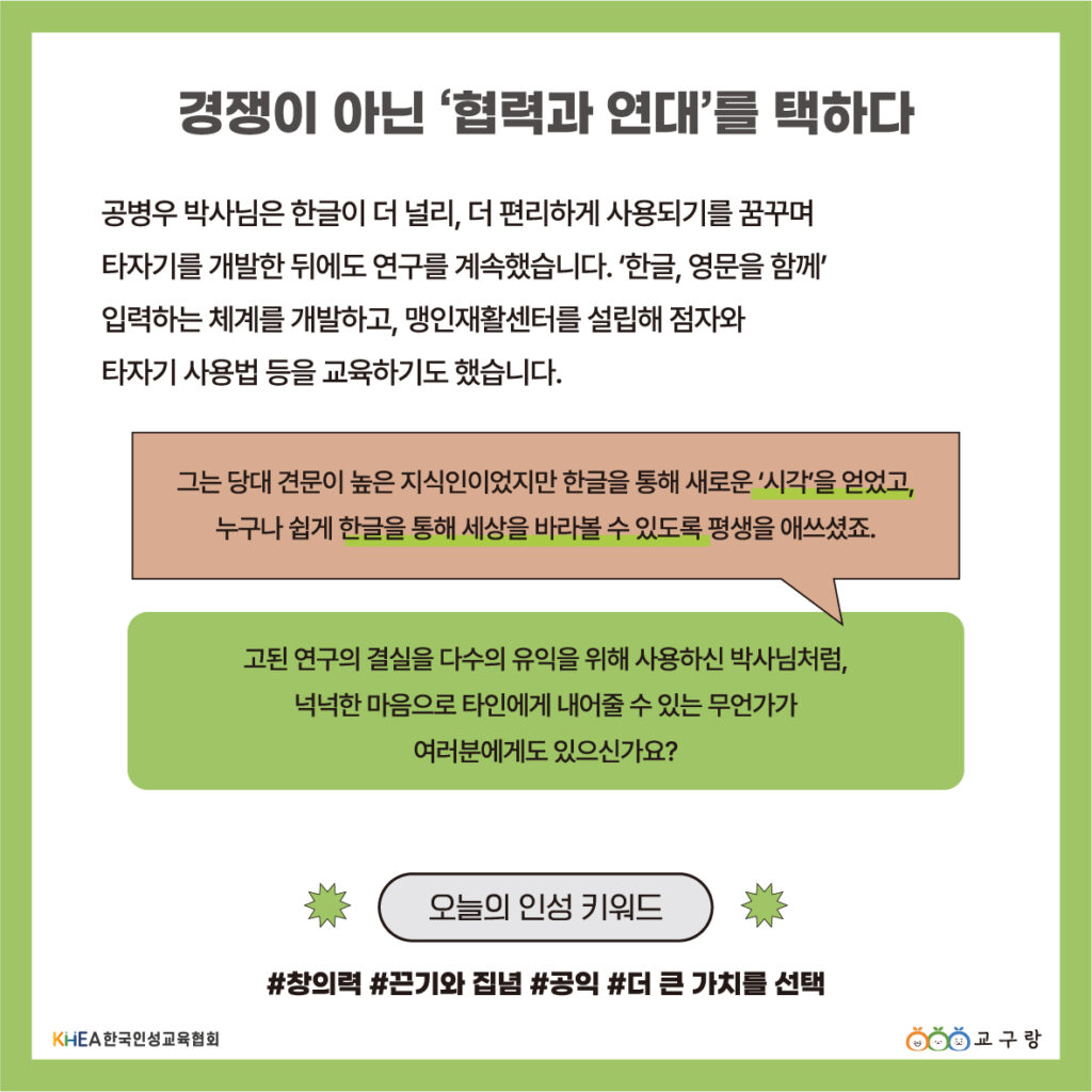 공병우 박사님은 한글을 통해 ‘더 나은 세상과 연결되는 문’을 만들고자 했습니다.