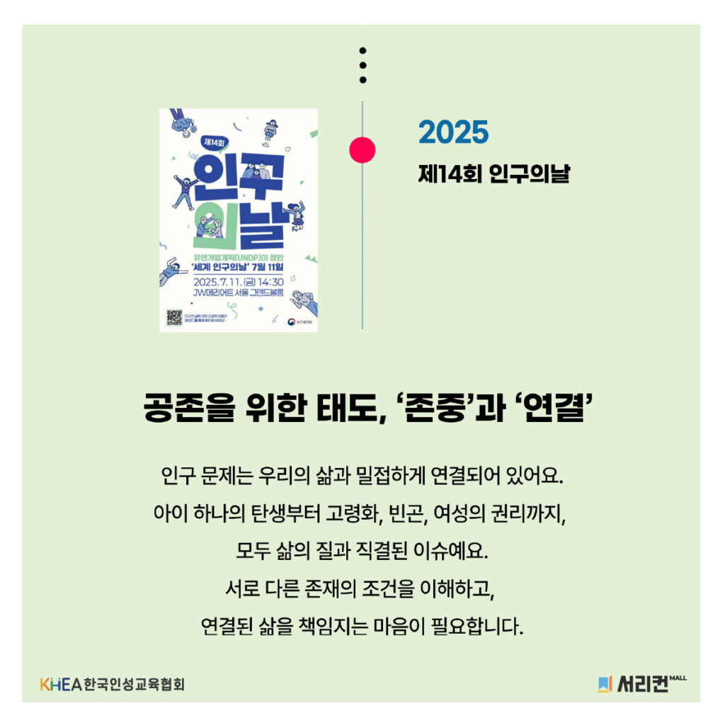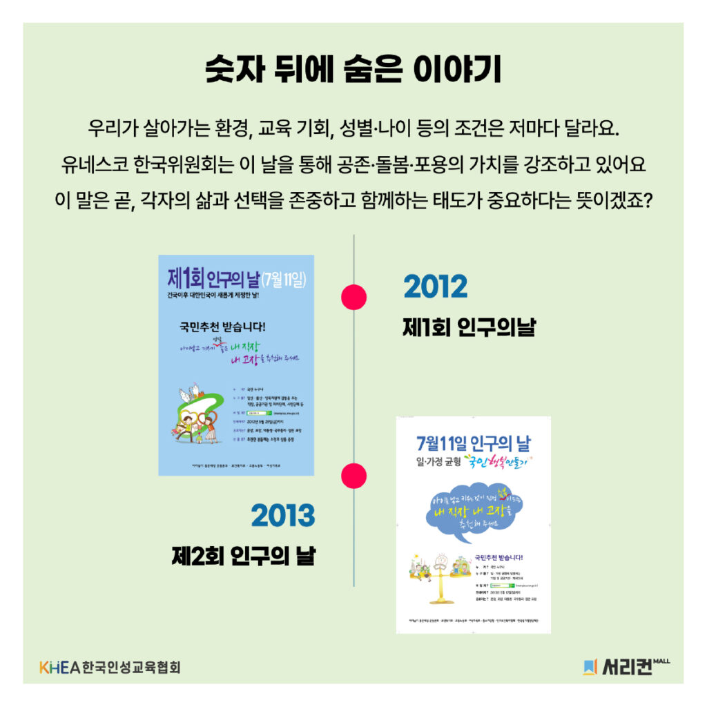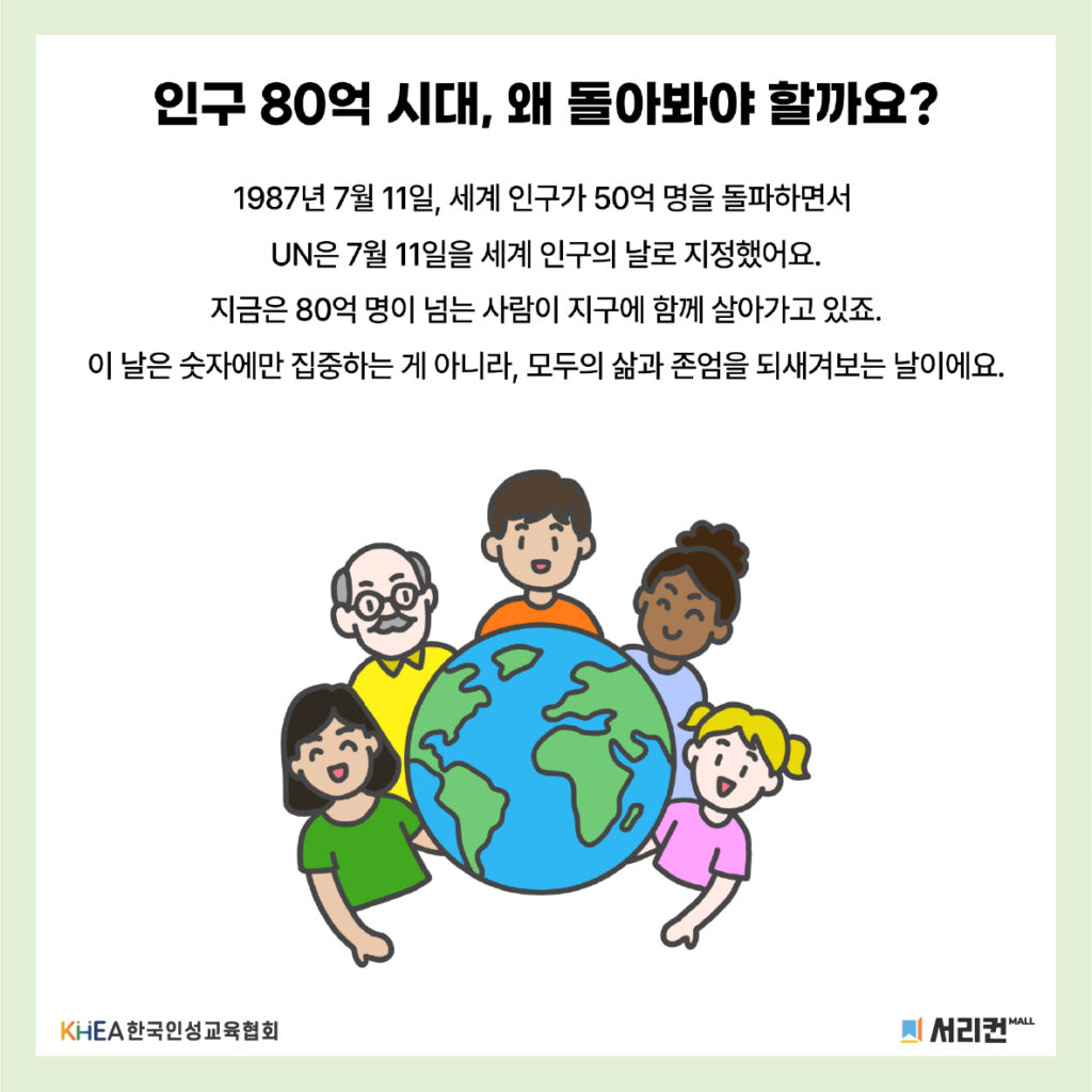 1987년 7월 11일, 세계 인구가 50억 명을 돌파한 것을 기념하여 ‘세계 인구의 날’이 제정되었습니다!👨👩👧👦🌍