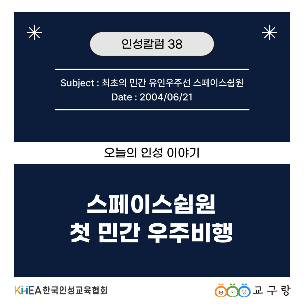 Subject : 최초의 민간 유인우주선 스페이스쉽원