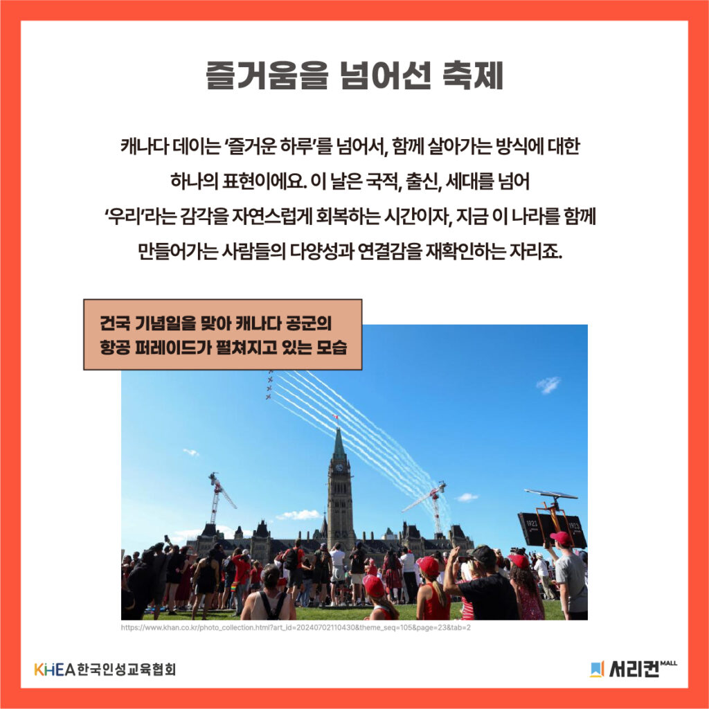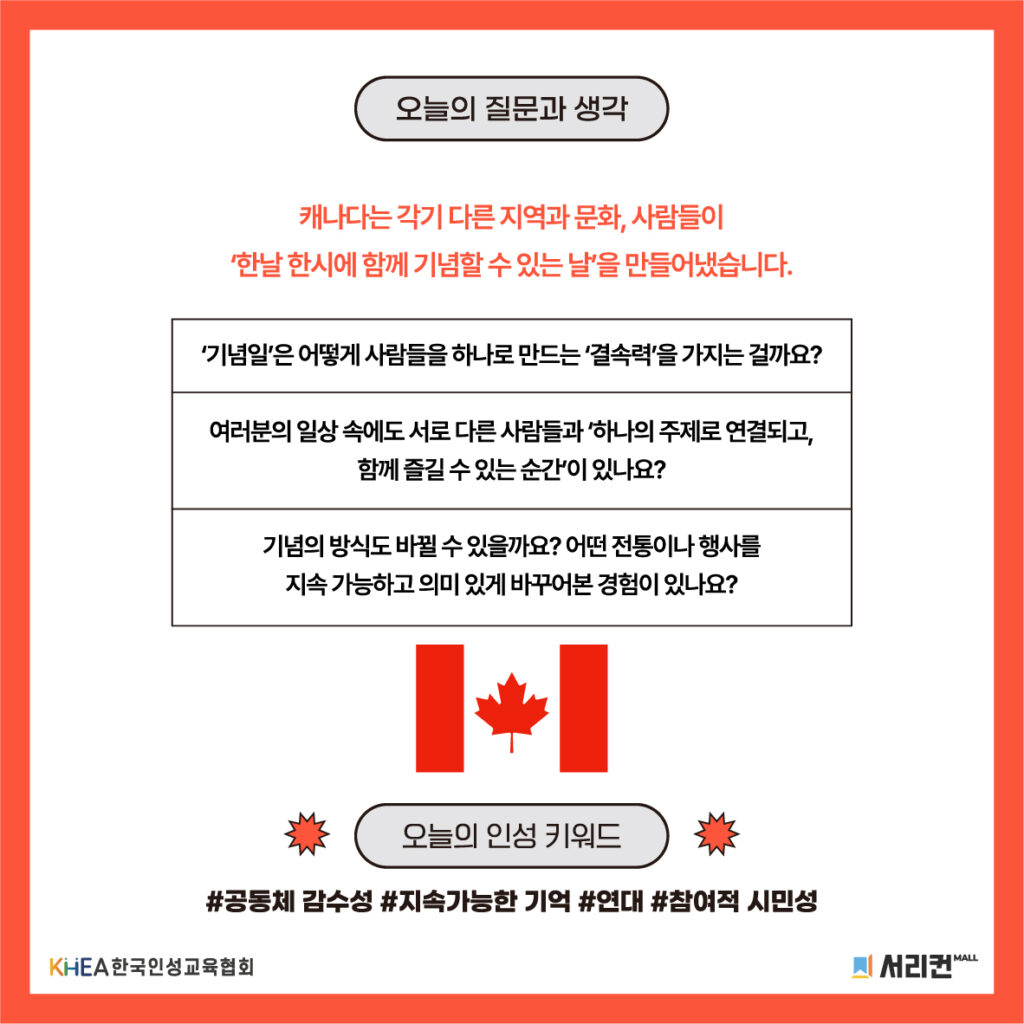 캐나다 데이는 캐나다 건국 기념일을 맞아 공동체의 의미를 되새기는 축제의 날입니다.💡