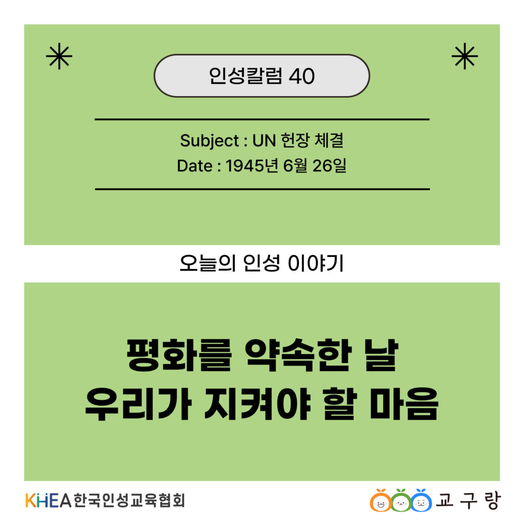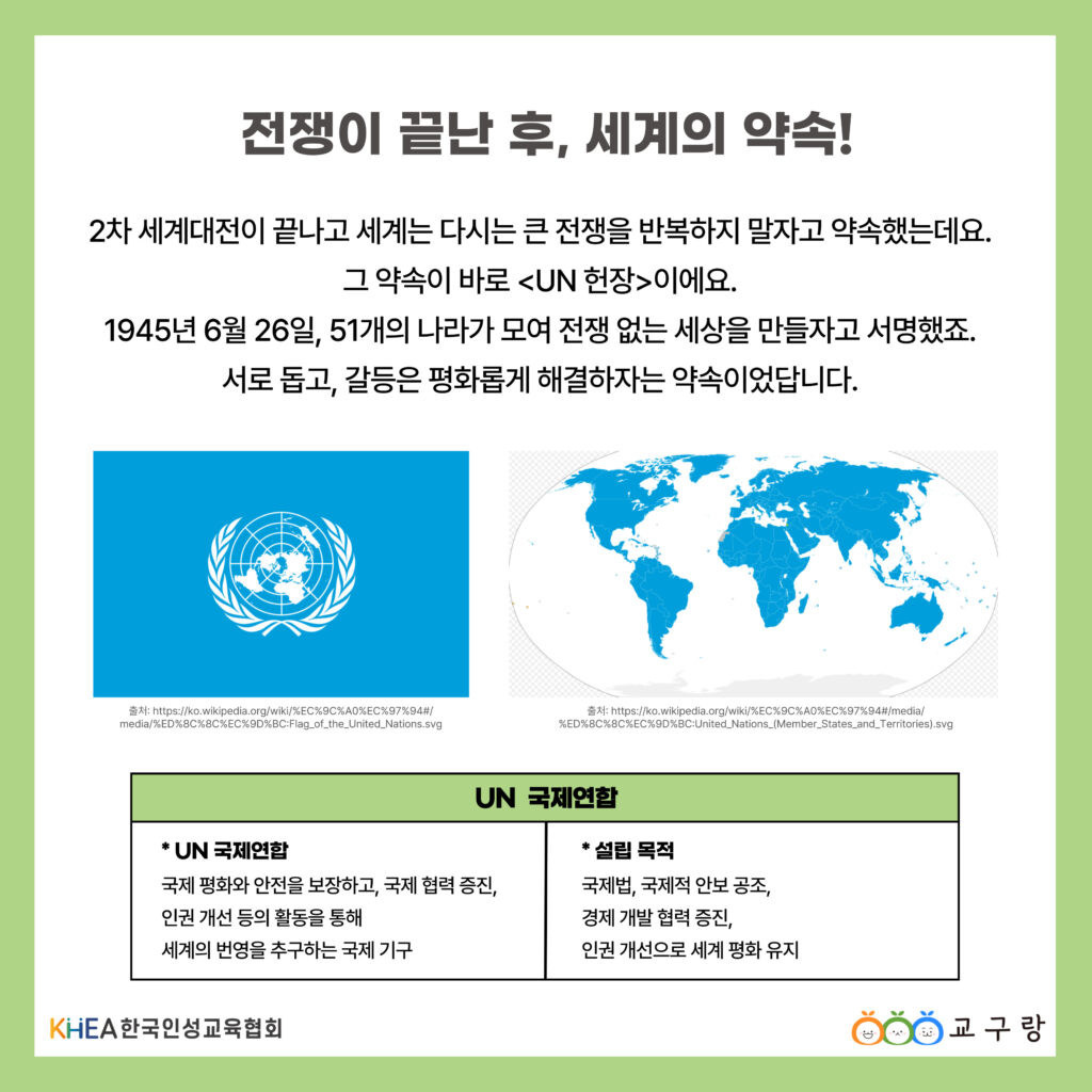 2차 세계대전 후, 전 세계는 다시는 큰 전쟁을 반복하지 않겠다고 약속했습니다. 그것이 바로 UN 헌장입니다.🌍