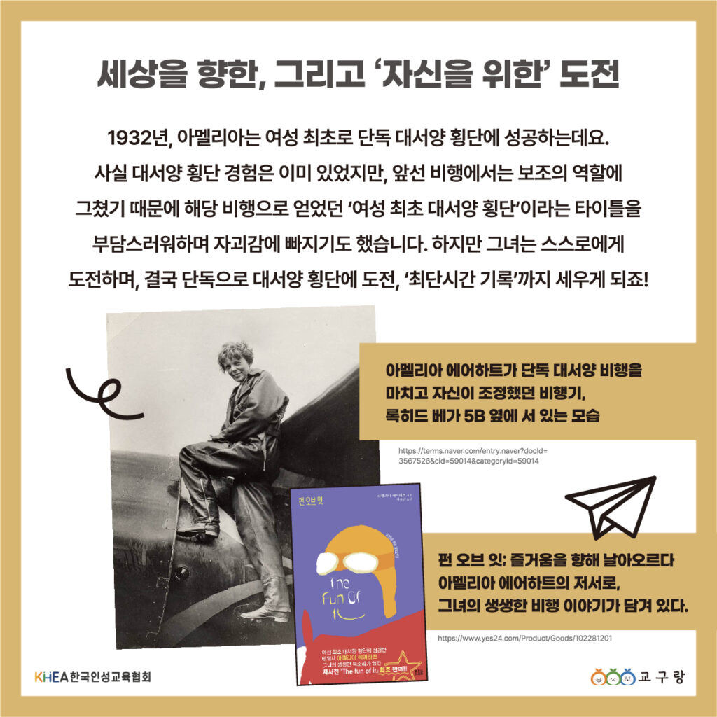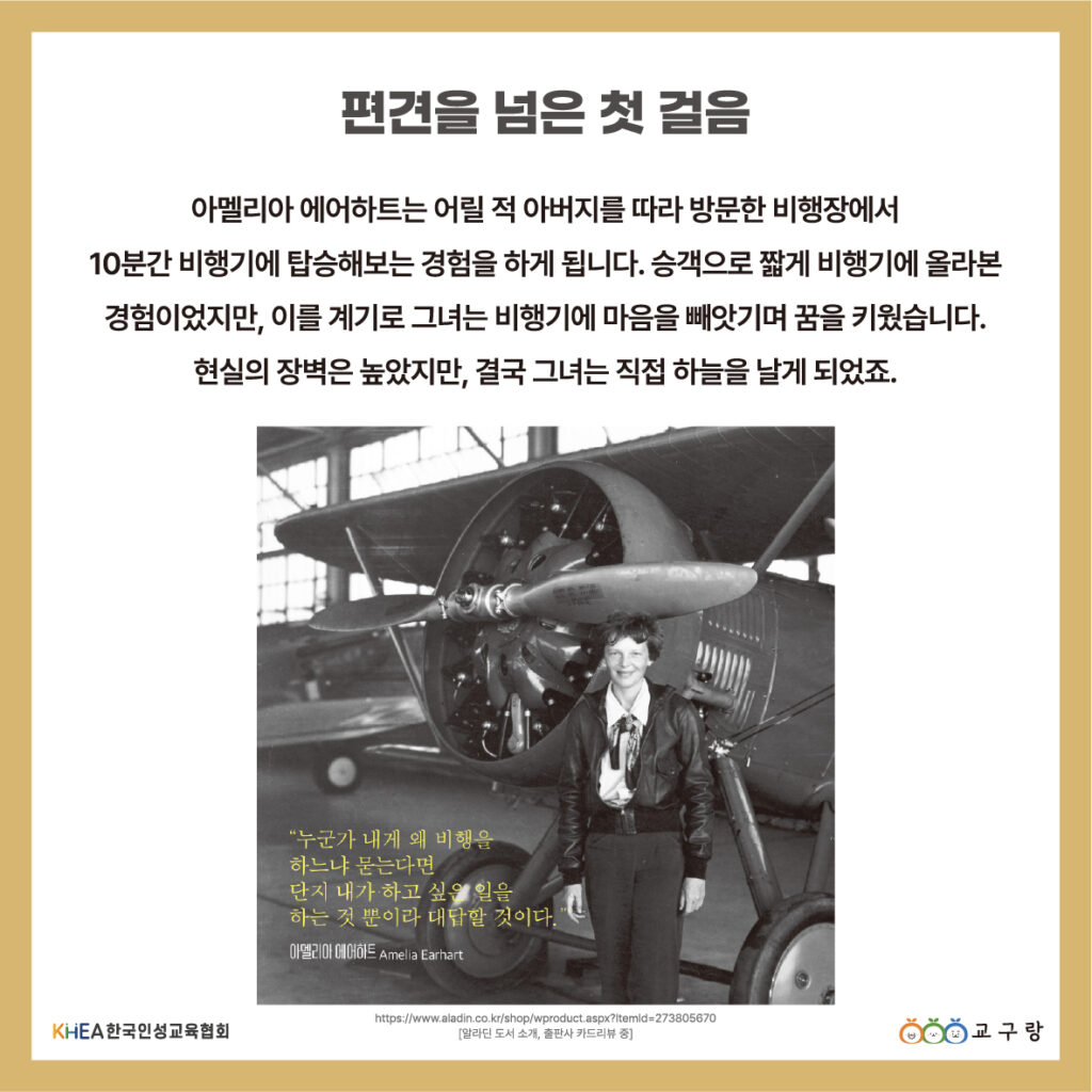 어린 시절 짧은 비행 경험에서 꿈을 키운 아멜리아는 현실의 장벽을 넘고 직접 하늘을 날게 되었어요.✈️