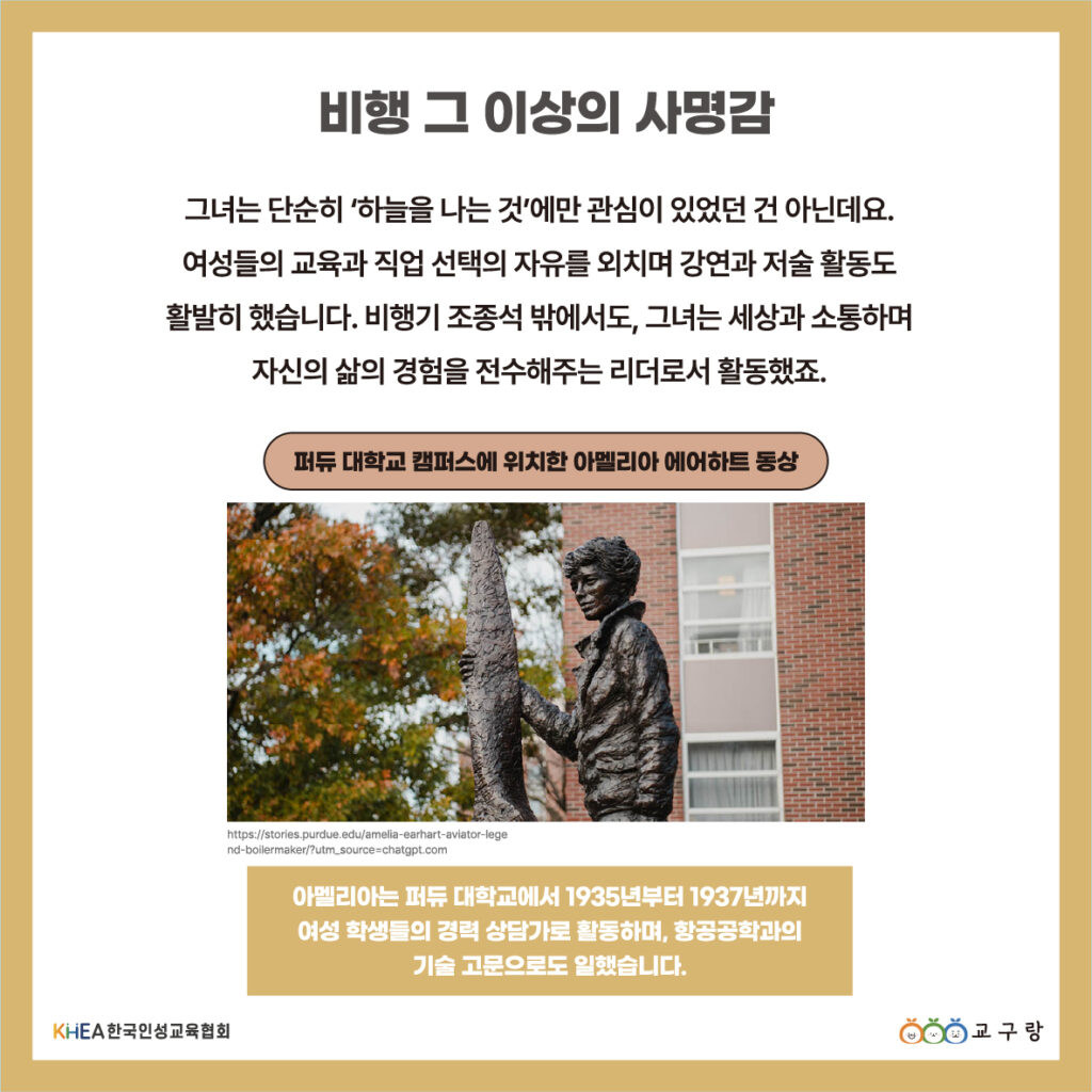 또한 퍼듀대학에서 여성 학생들의 상담가와 항공 기술 고문으로도 활약했고요.