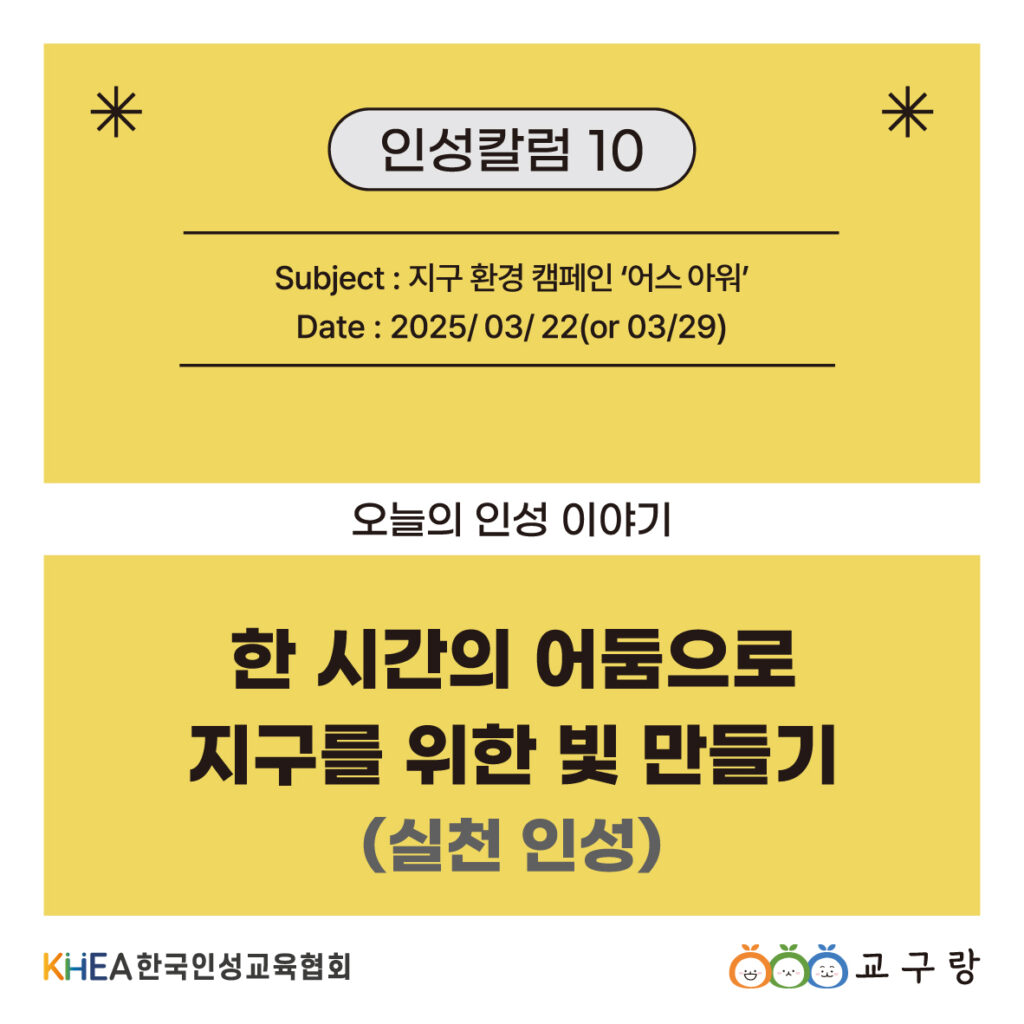 Subject : 지구 환경 캠페인 ‘어스 아워(Earth Hour)’