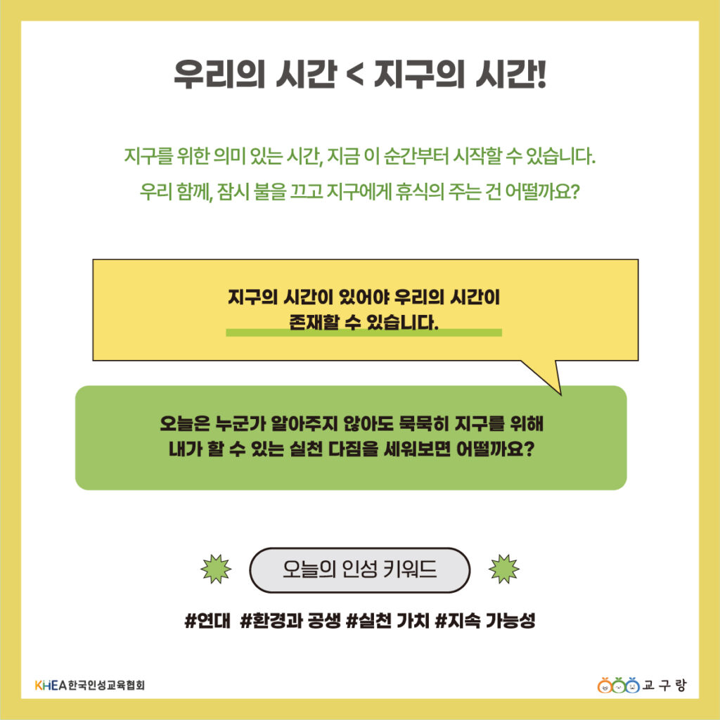 ✨어스 아워는 ‘지구의 시간’을 존중하는 마음에서 출발합니다.