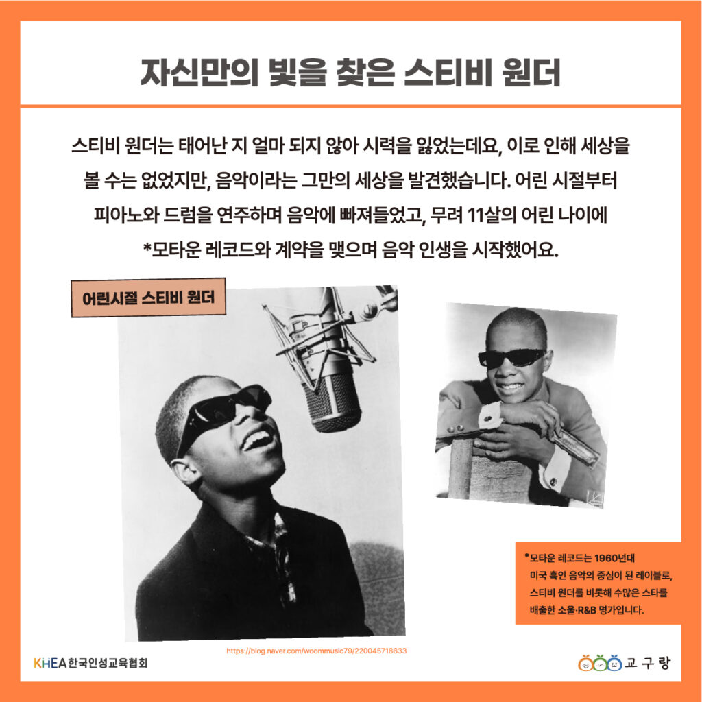 스티비 원더는 시력을 잃고 태어났지만, 음악을 통해 세상을 바라보며 자신의 길을 찾았습니다.🎹