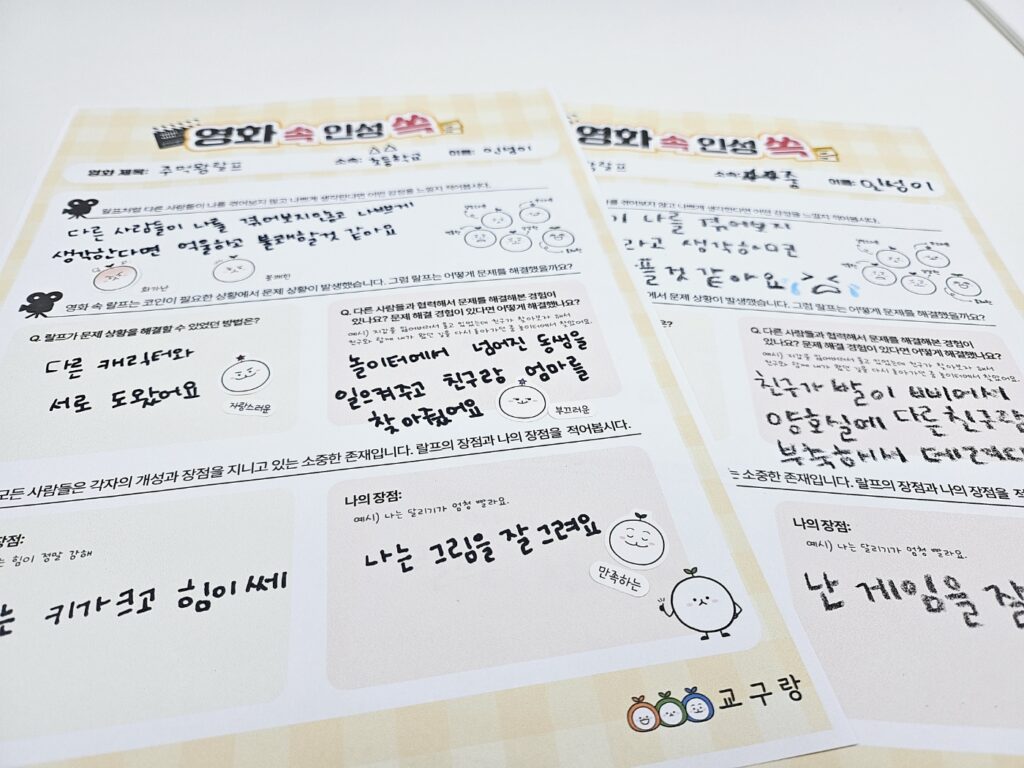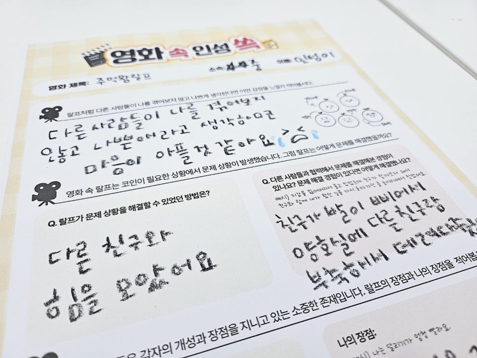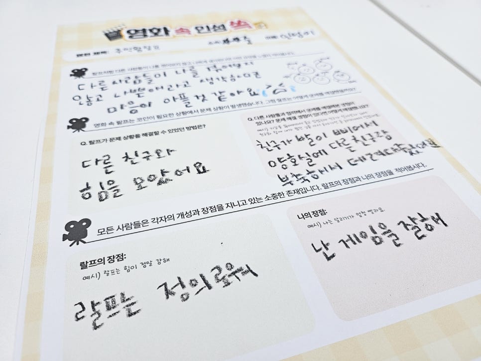 *아래 활동지 예시 사진은 스포일러가 될 수 있습니다.