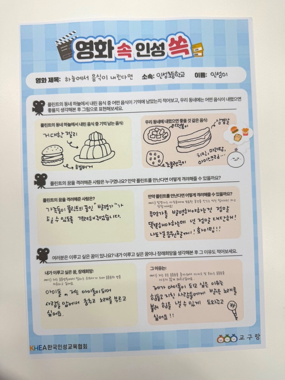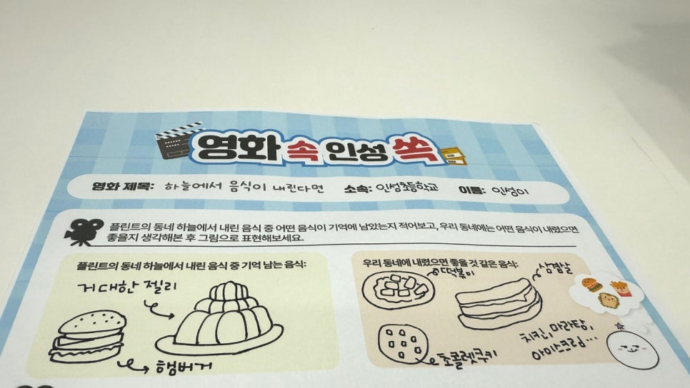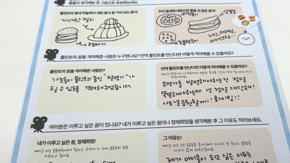 *아래 활동지 예시 사진은 스포일러가 될 수 있습니다.