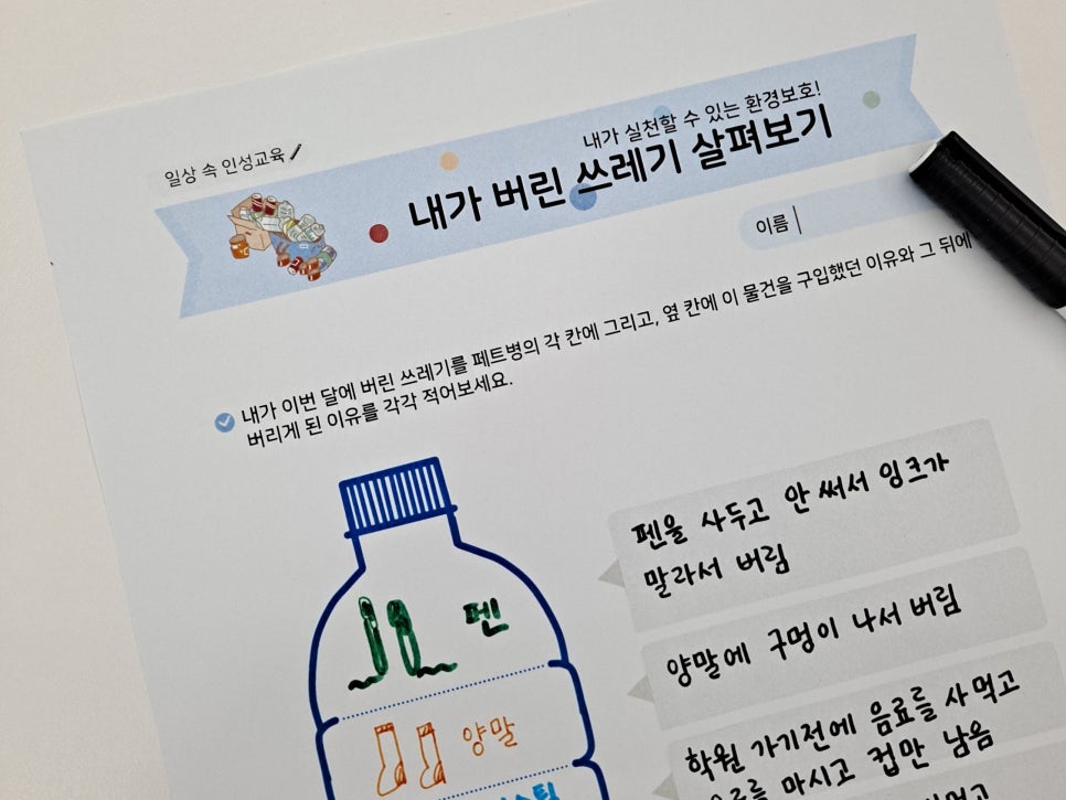 내가 버린 쓰레기를 그림과 글로 표현하고,