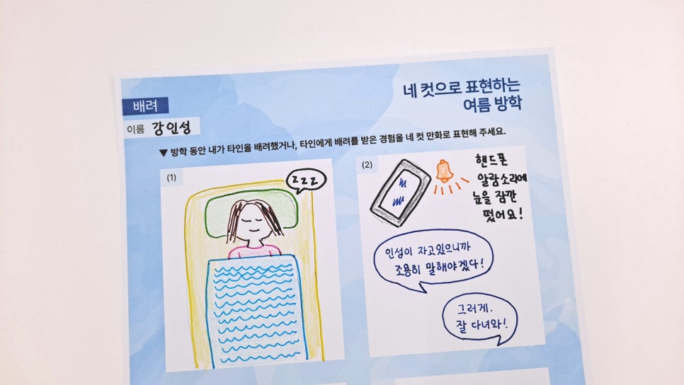 <네 컷으로 표현하는 여름 방학 [배려]> 활동지입니다:)