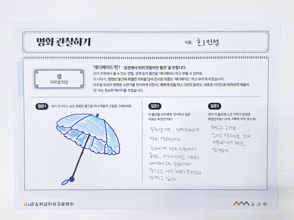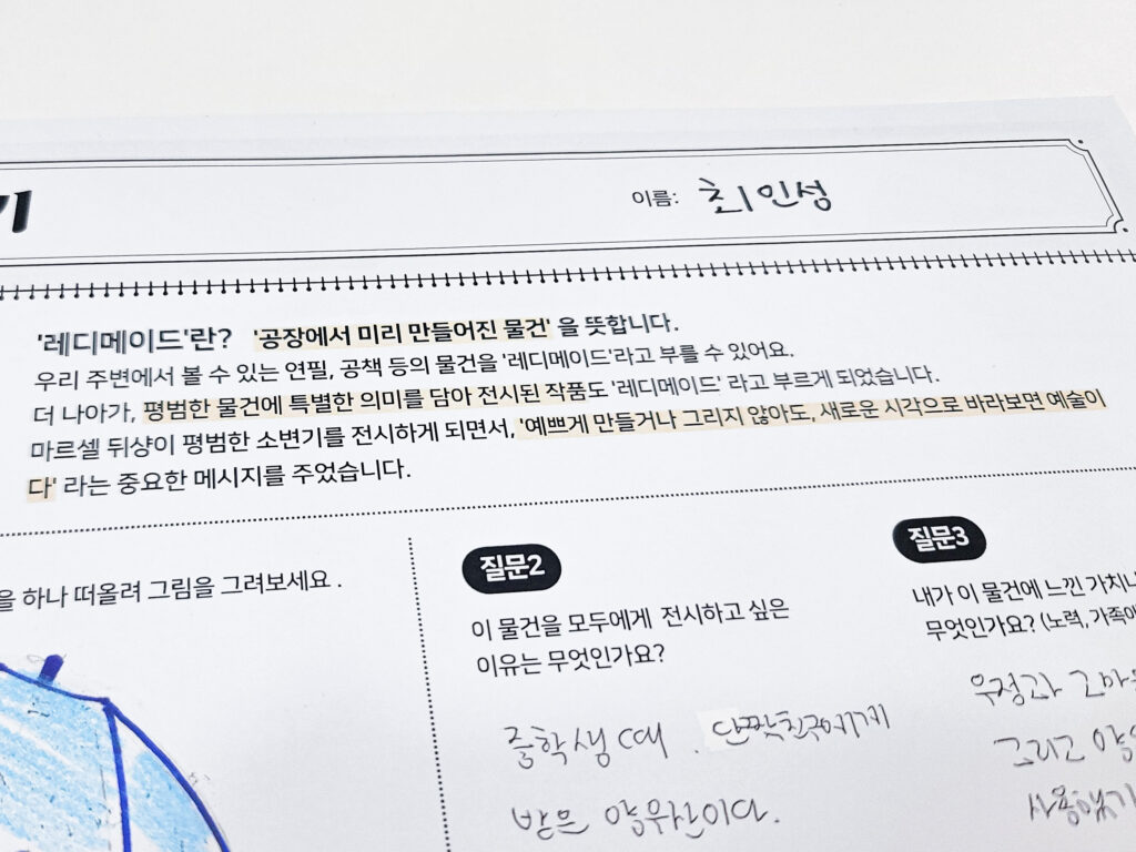 활동지 작성 후에는 친구들의 특별한 물건을