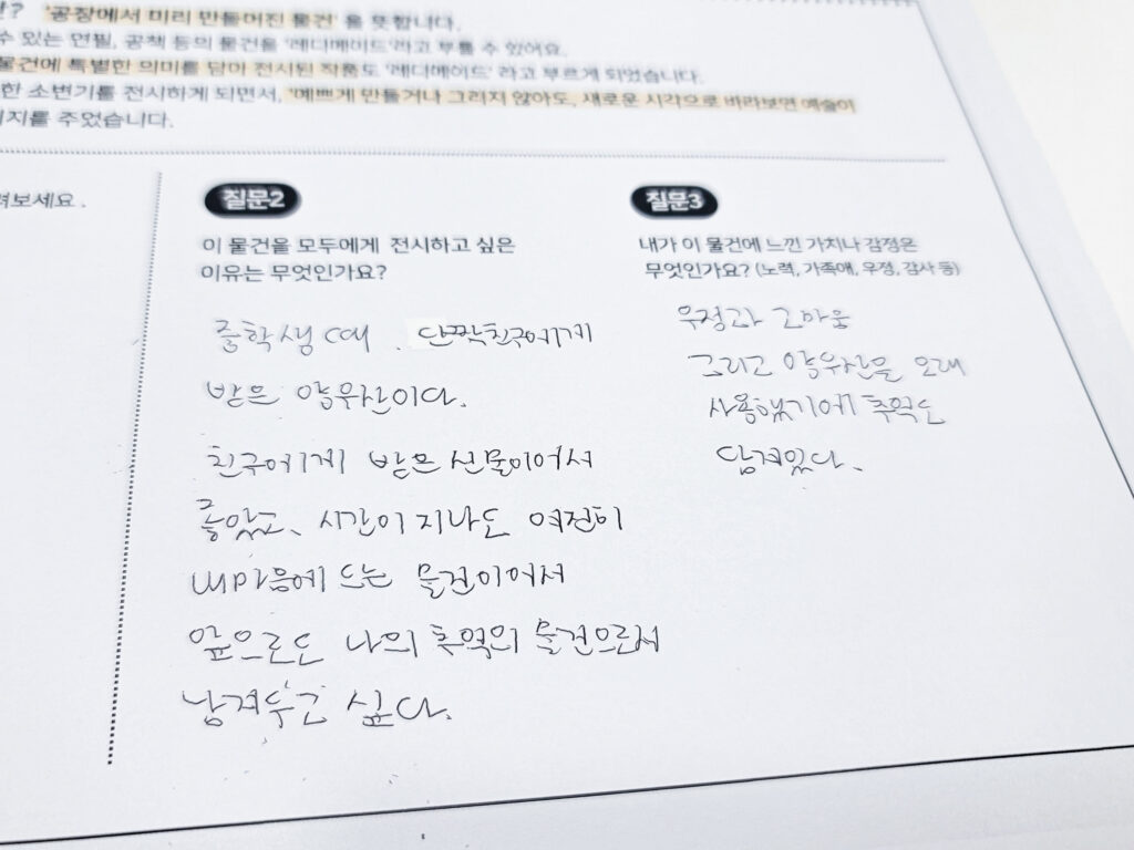 3. 내가 이 물건에 느낀 가치나 감정은 무엇인가요?